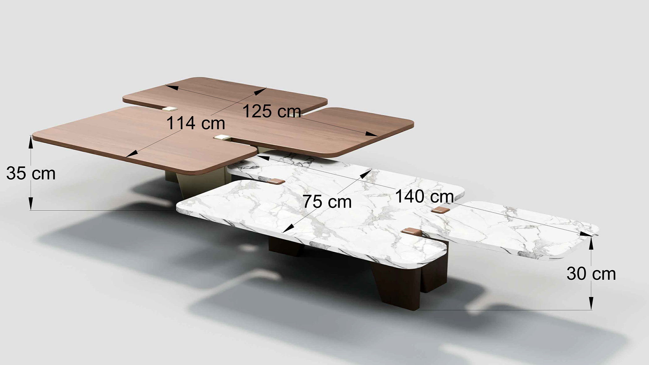 Wood: MDF, 18mm thickness, Turkish walnut veneer