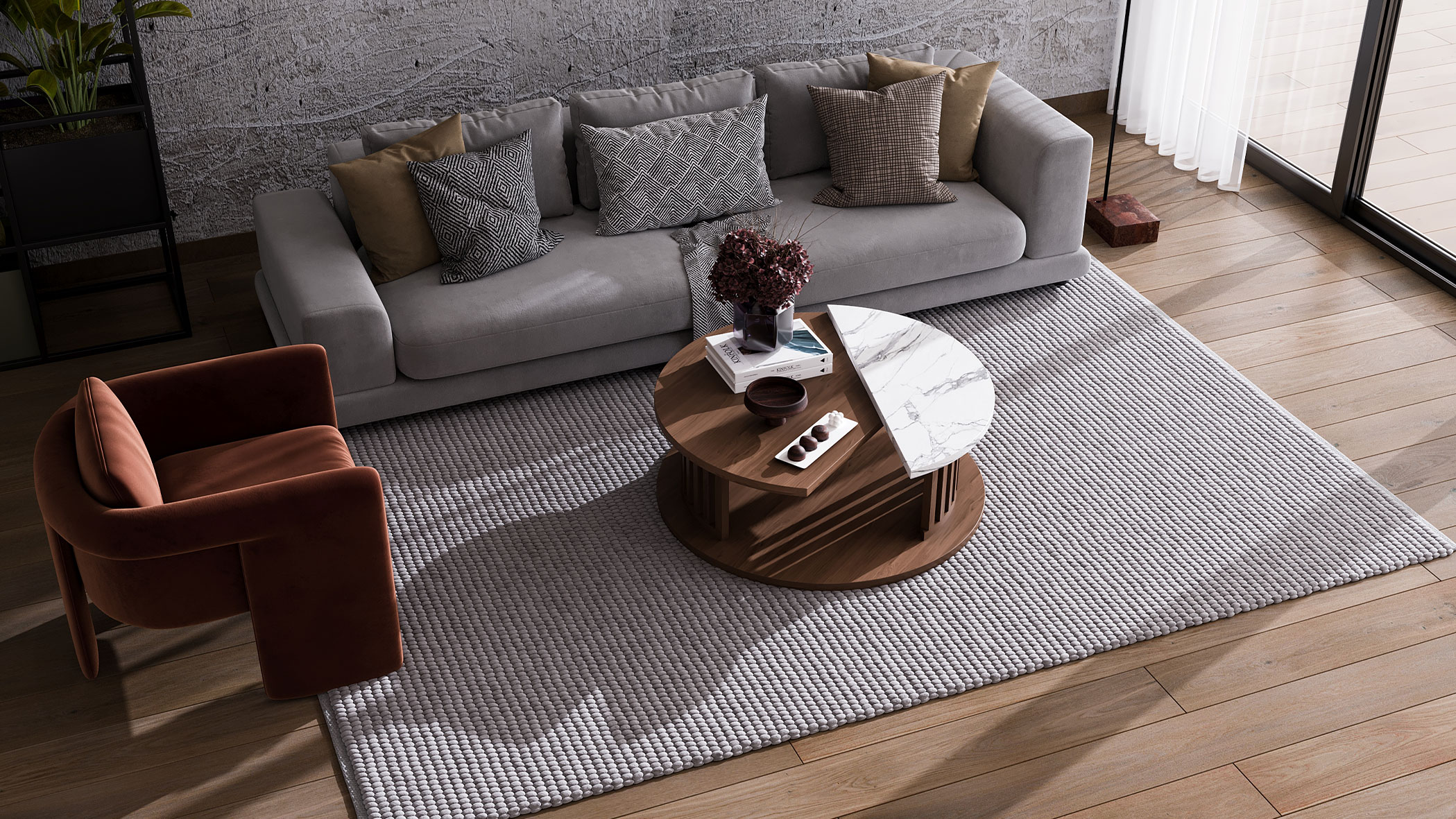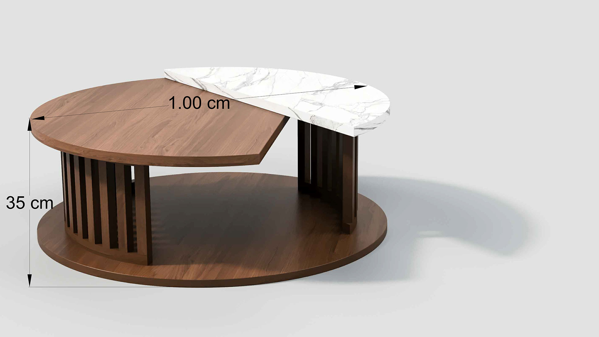 Dimensions: 120 cm. Wood: MDF, 18 mm thick. Glass: 1 piece, 5 mm bronze-tinted + 1 piece, 5 mm clear glass. Paint: High-quality ester finish.