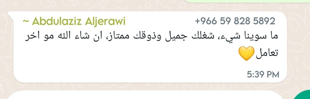 ما سوينا شيء، شغلك جميل وذوقك ممتاز، ان شاء الله مو اخر تعامل💛