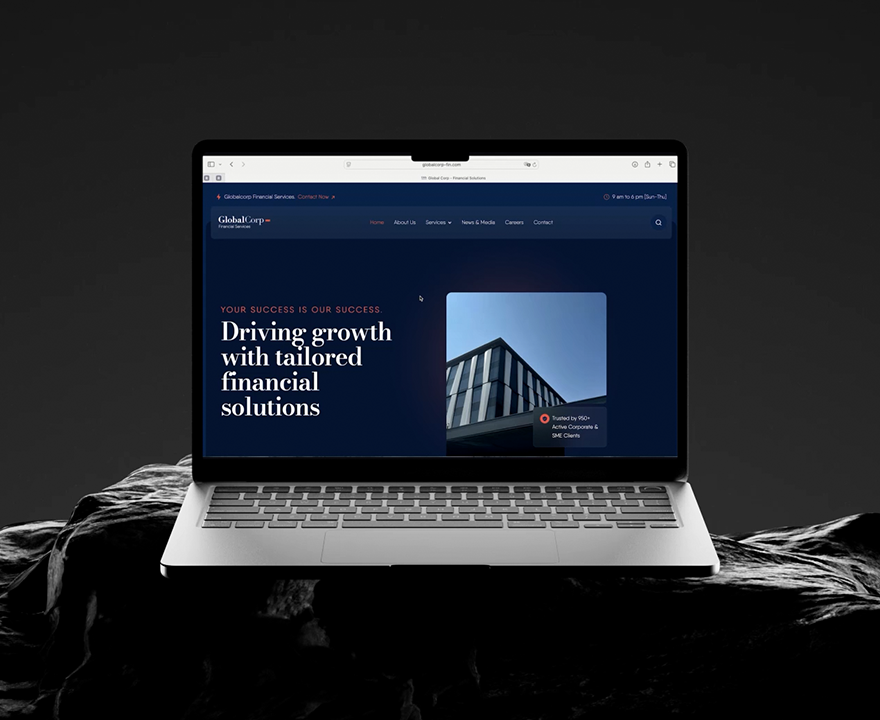 A corporate website designed to position Global Corp as a trusted financial partner for enterprises and SMEs. The experience balances credibility with clarity, presenting complex financial services through a clean, confident, and growth-focused digital presence.