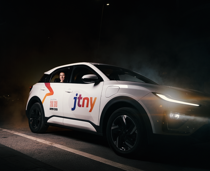 JTNY is a smart mobility solution designed to get you back home safely after your night out. Built around reliability, trust, and ease, JTNY connects users with professional drivers and branded vehicles, turning late-night rides into a calm, controlled experience.