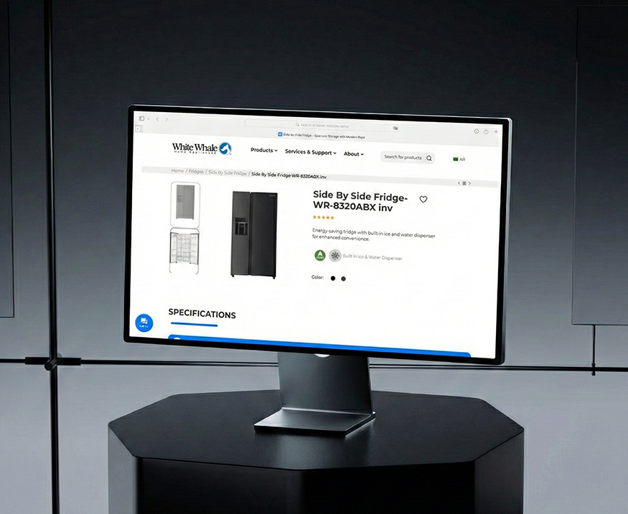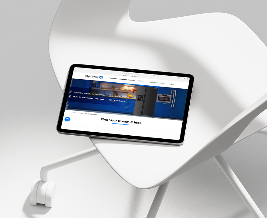 White Whale’s website was designed as a fully branded digital showroom, one that reflects the brand’s strength, clarity, and reliability while making it easy for users to explore a wide range of home appliances.